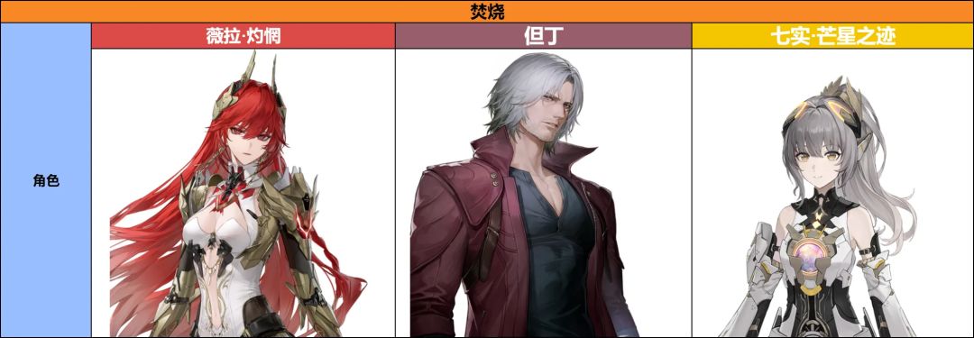 #战双帕弥什创作征集令 1、角色定位 • 和维吉尔一样有第二形态,机动性高,火属性进攻型,定位是焚烧效应主C,不过,他的火属性伤害倍率相对不高,在非焚烧场景下,输出能力会受到限制。 2、优点 • 输出:和维吉尔设计理念类似,唯一不同就是,但丁是火属性输出,第二形态范围更大,伤害高。 • 适配性:比较依赖队友,与火队薇拉·灼惘以及其他效应启动器组成焚烧队,才能发挥出强大的伤害。 3、缺点 • 保值