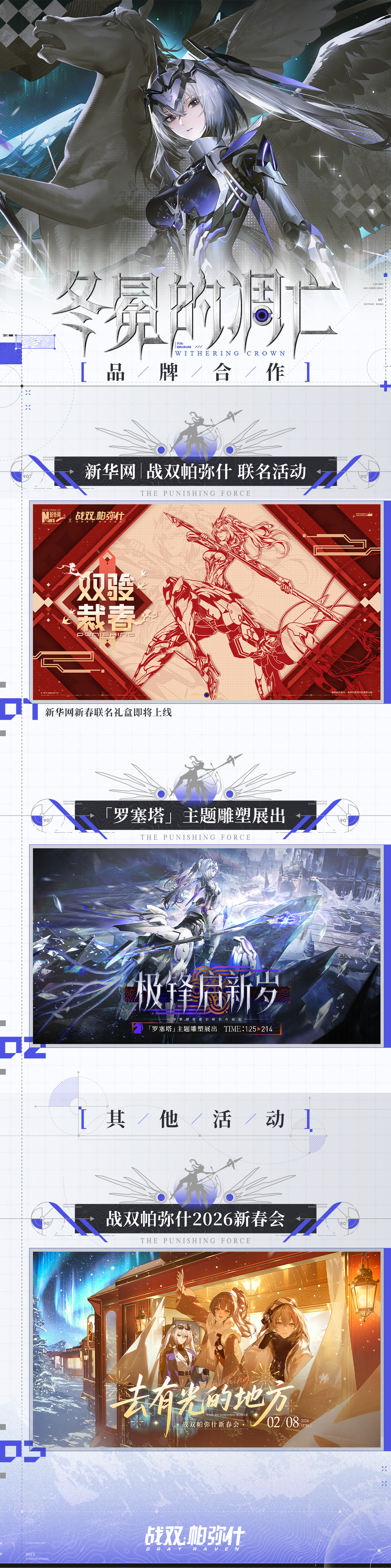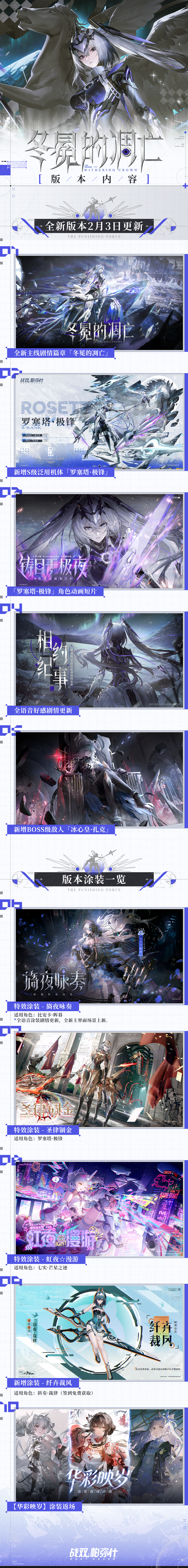 「冬冕的凋亡 | 前瞻特别节目」现已落幕,全新版本将于2月3日开启。感谢指挥官今晚的陪伴,有关本次节目中介绍的角色、涂装、活动玩法等内容已整理完毕,指挥官可点击长图查看详情。#战双帕弥什 #冬冕的凋亡