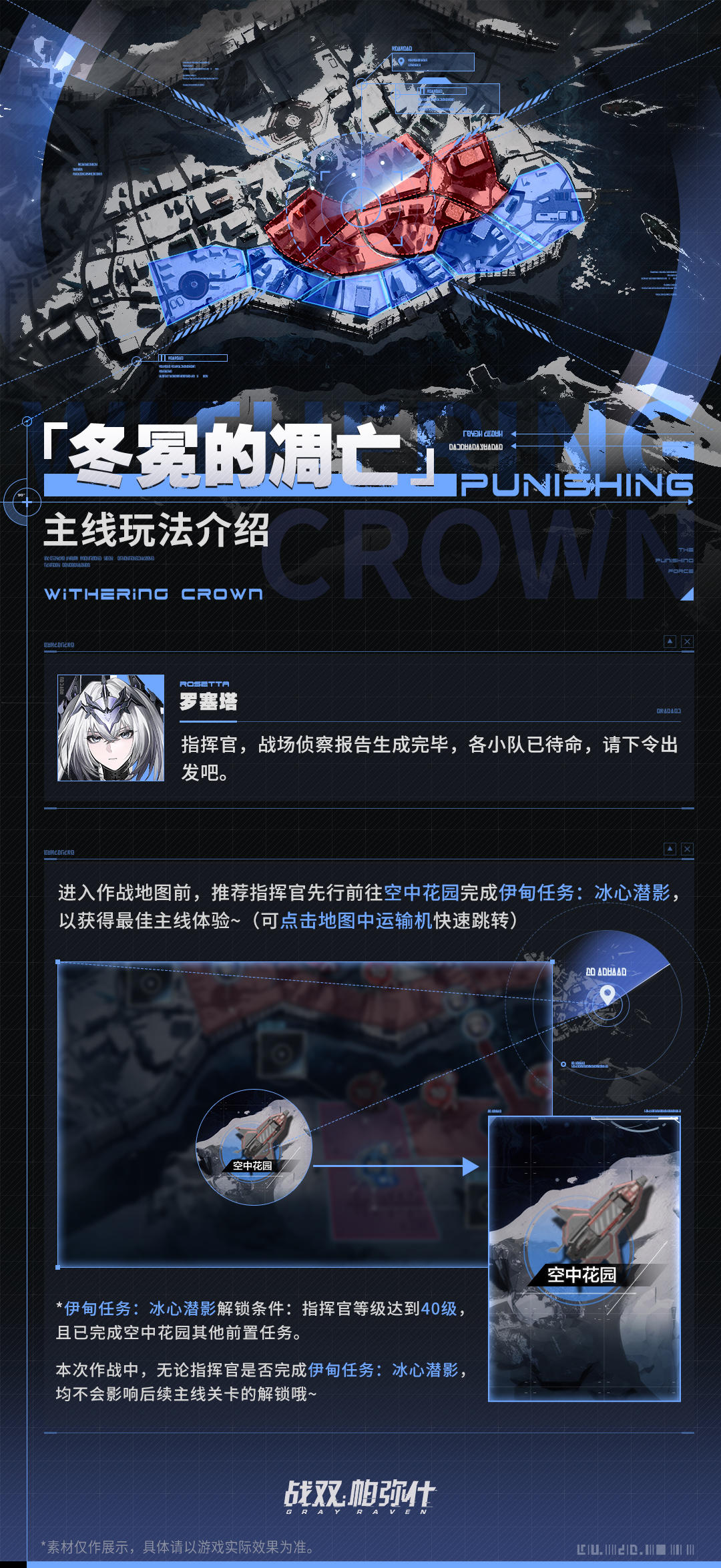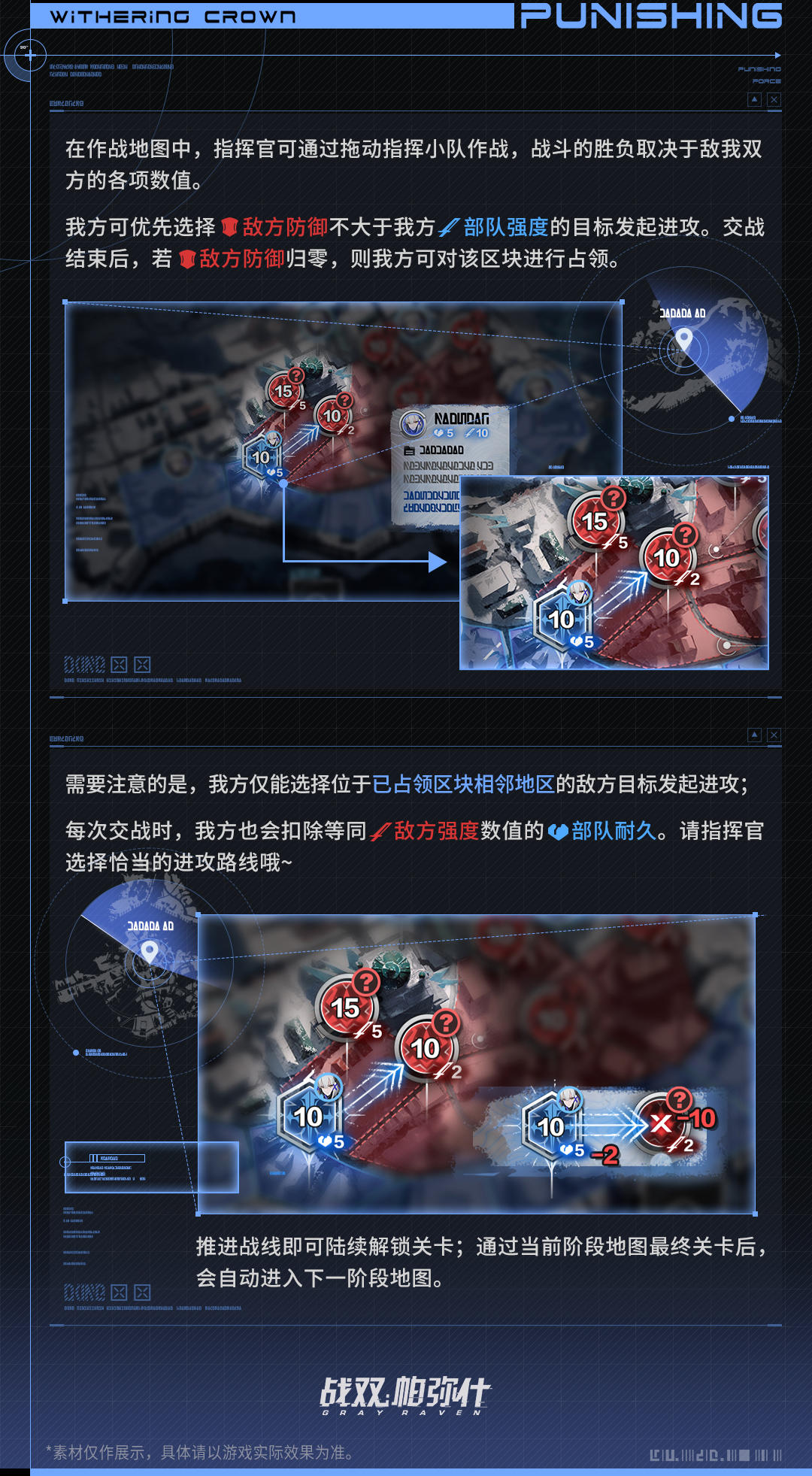 本次作战中,指挥官将通过战场推演指挥部队,在作战过程中逐步解锁主线关卡、剧情及更多隐藏信息。在推演过程中,敌我双方将展开博弈。选择恰当的进攻路线,稳扎稳打拿下胜利吧!更多玩法详情,指挥官可点击图片查看。 #战双帕弥什 #冬冕的凋亡 *本素材仅作展示,具体请以正式服实际情况为准。————————————《战双帕弥什》新版本「冬冕的凋亡」2月3日正式开启!游戏下载:https://pns