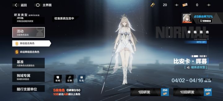 篇幅很长,队伍和意识搭配我放在最后面。前排提示:新手攻略有很强的时效性,看新手攻略时,注意攻略的发布和更新时间是否为当前版本。有问题可以直接评论区问,我看到且有时间的话会解答。这版本的S级“涅缇娅·亡歌”不用抽,版本限时送一个本体,勤务商店常驻送50碎片+专武+专属辅助机。不过作用也只是纯粹的空系奶妈,并不能像终焉和幻日那样混队(毕竟白送)。目录:1、前言(主要角色的抽取推荐、前中后各期大