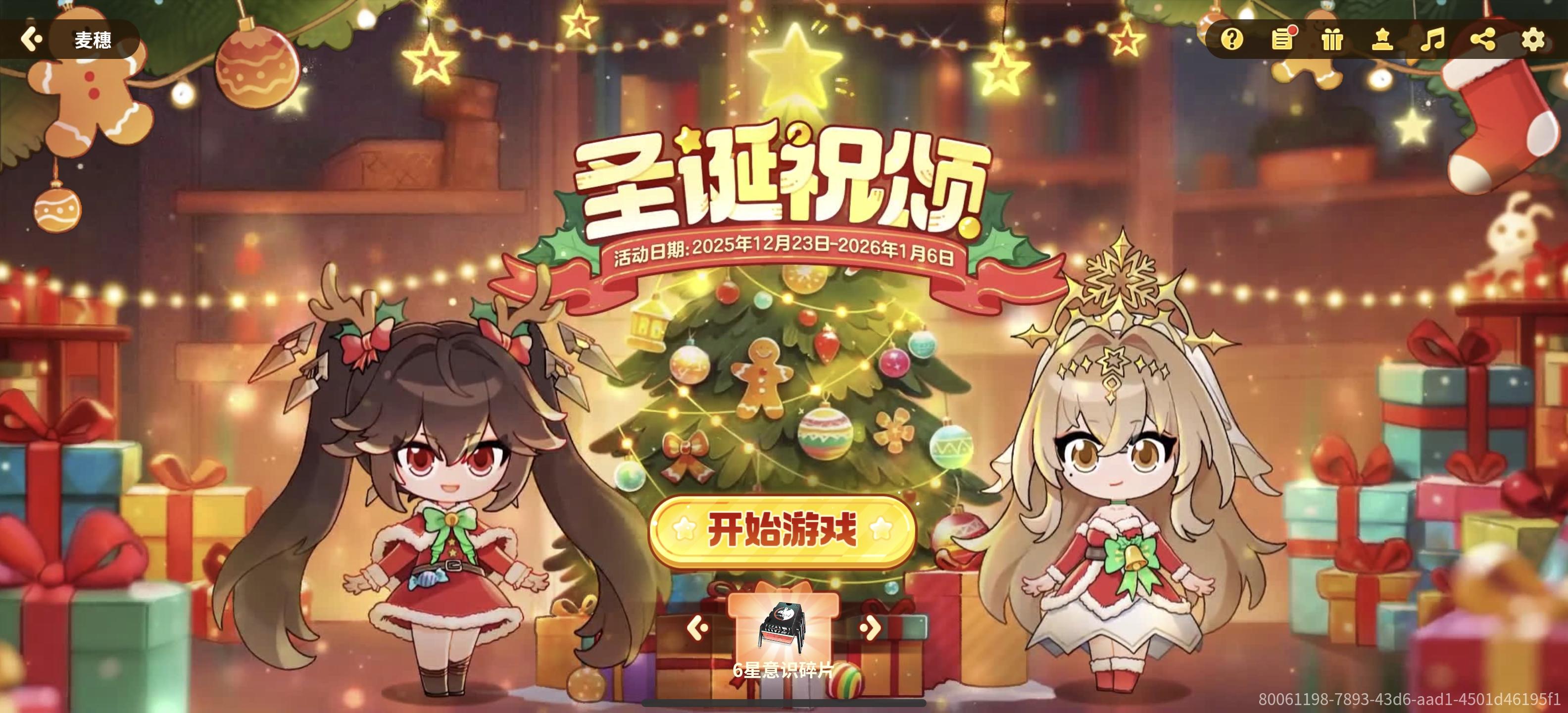 簌簌雪落,共谱颂歌。网页活动「圣诞祝颂」现已上线。指挥官们可通过游戏内活动入口或点击下方链接参与,完成圣诞祝颂的挑战任务,有机会获取活动角色研发券、黑卡等奖励。【活动链接】https://cn-xmas-h5-page.zspms-game.com/【活动时间】2025年12月23日版本更新后 - 2026年1月6日05:00【活动说明】1.活动期内,指挥官可通过完成游戏任务获得对应