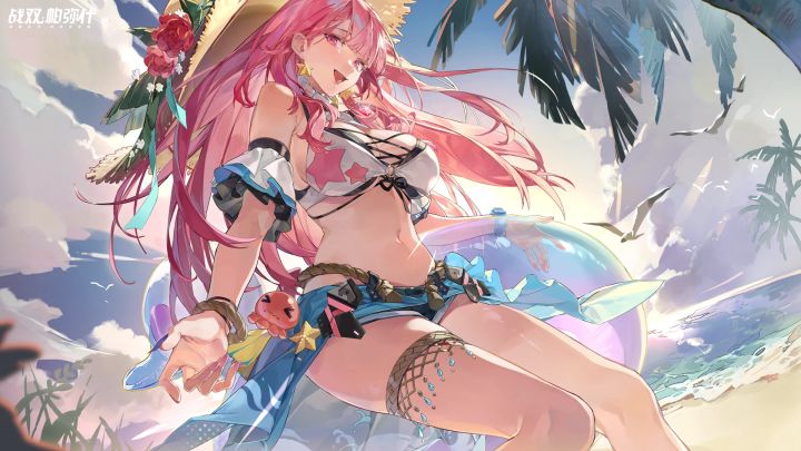 她迎着喧嚣的海风摊开手掌,指尖微微收拢,仿佛要将那无形的祝福留在掌心。阳光透过叶隙斑驳洒下,在她脸上映出一抹明媚的笑容,轻盈而灿烂。风声渐息,她抚平被风吹乱的发丝,将花朵点缀的草帽重新戴好。她微微回头,身体尚未完全转过,纤细的手却已先一步伸出。“快点啦,指挥官,大海正等着我们呢!”——启动日快乐「艾拉」