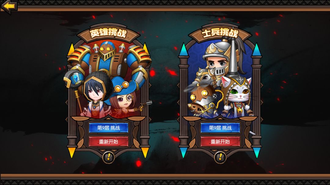 大家新年快乐,我们准备在大年30之前更新一个新的挑战模式,士兵挑战。 现在已经进入测试阶段,请耐心等待,这次更新应该是苹果,安卓,steam一起更新的。 规则和英雄挑战差不多的,只是英雄换成了N个士兵,士兵是根据他本身价格来判断能出几个的。挑战的怪是单位和英雄。每一波都可以选一个魔法,技能,装备。难度也是越往后越难。