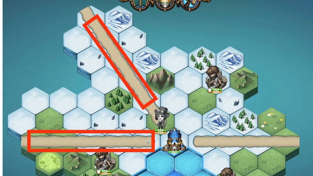 依旧是碰到什么局势什么写什么站位游戏开局没有土匪,第一回合结束时刷新土匪,土匪不会刷在视野之内开局把英雄造在无地形遮挡视野的地方,最大程度的获取视野~如图1所示,两条路线最少需要消耗3.75移动力才能打到我方英雄,土匪刷新在差一格的地方概率非常小,这样的视野开局几乎不会被土匪打到~3点及以下视野的英雄很难做到这个效果,如果是脆皮低视野英雄建议造在主城里让承伤单位站在合适的位置挨打,等