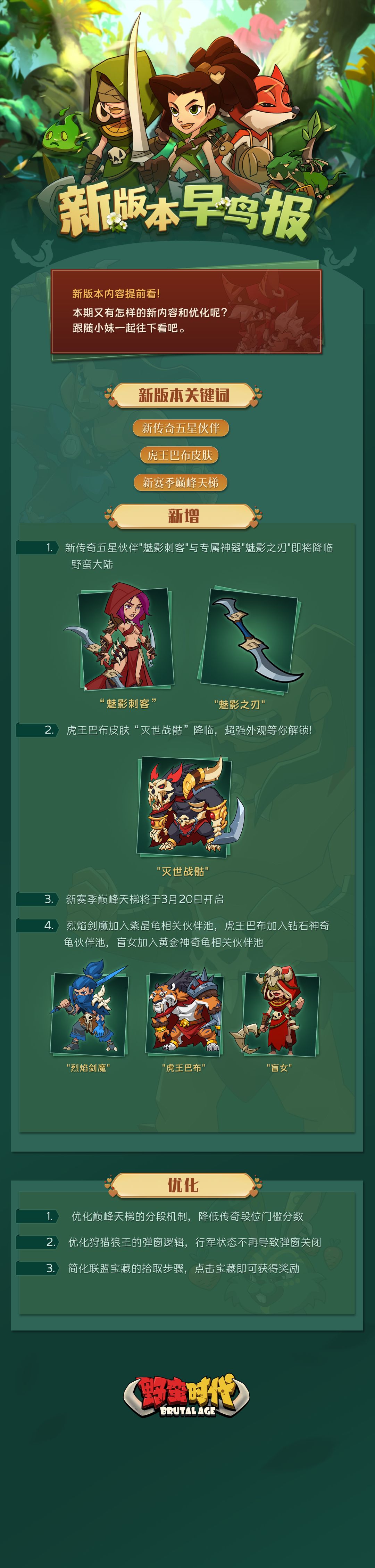 【新版本早鸟报 | 新传奇五星伙伴即将降临,还有巅峰天梯新赛季即将开启!】 亲爱的首领大人, 游戏即将迎来新版本更新, 小妹为大家提前打听到了内容,快来看看吧!