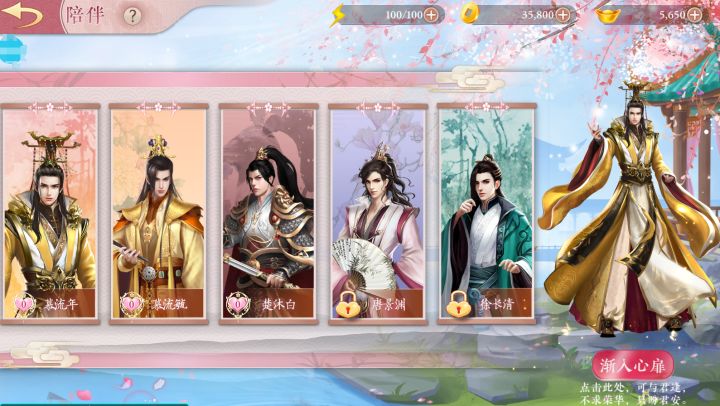 《梦回凤歌》测试在即,玩法抢先看之陪伴~开启要求:等级达到20级开启时间:全天小主在主界面即可直接点击邂逅按钮进入陪伴界面。选择想到进行陪伴的人物,点击渐入心扉即可开始陪伴。和选定的人物进行聊天、漫步或者约会,都可以增加人物的好感度,好感度达到一定条件可以增加属性哦~