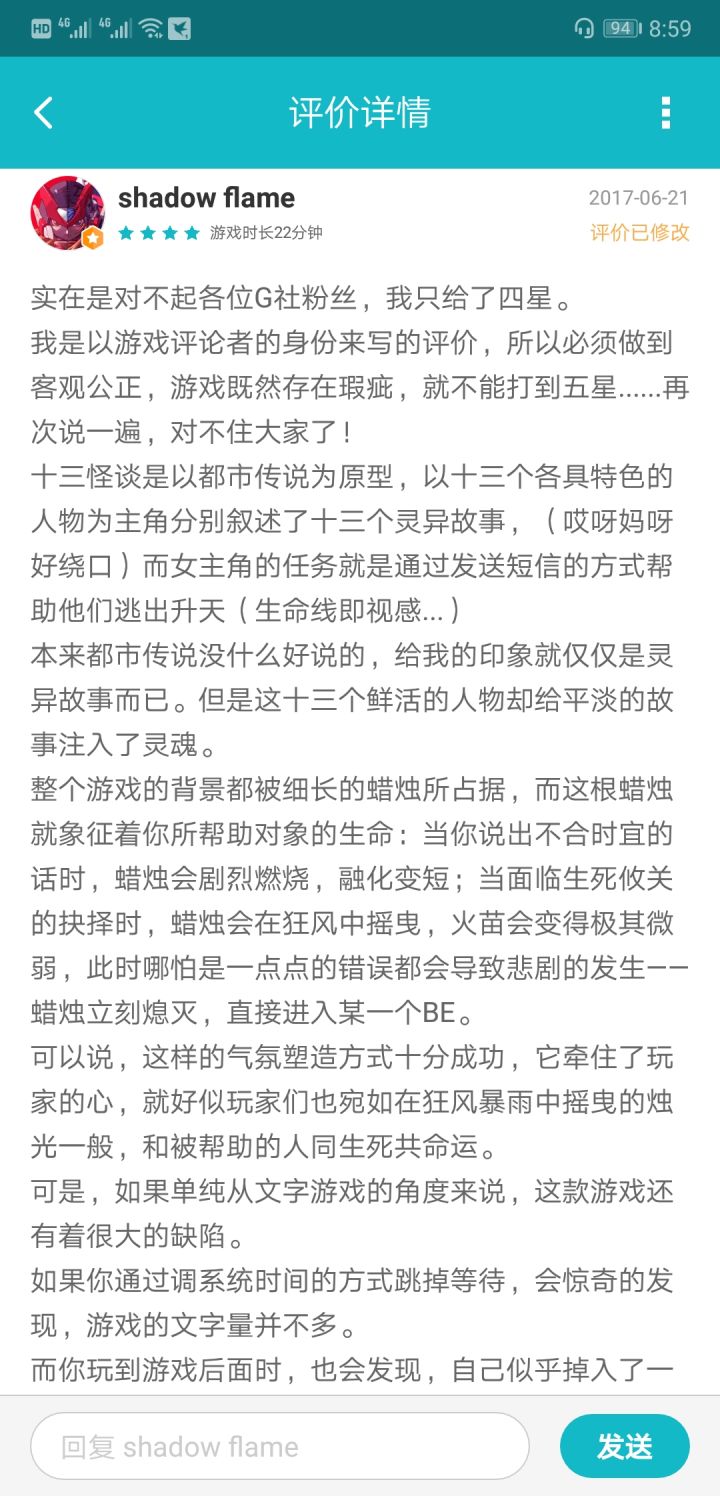十三怪谈以日本民间的鬼怪传说为背景,游戏的过程也是简单的图文方式。这让十三怪谈区别于那些通过声音和画面来达到烘托恐怖气氛甚至形成惊吓的一些所谓的恐怖大作。从心理上渐渐铺垫开来的恐怖氛围,这才是恐怖游戏真正恐怖的地方。看不见摸不着,完全脑补就吓一跳的,才算是真的佳作。虽然在BGM方面,十三怪谈也把氛围营造的不错,但是手机短信的通关方式加上日式民间传说故事的格调,就把整个游戏的代入感提高了很大一层。