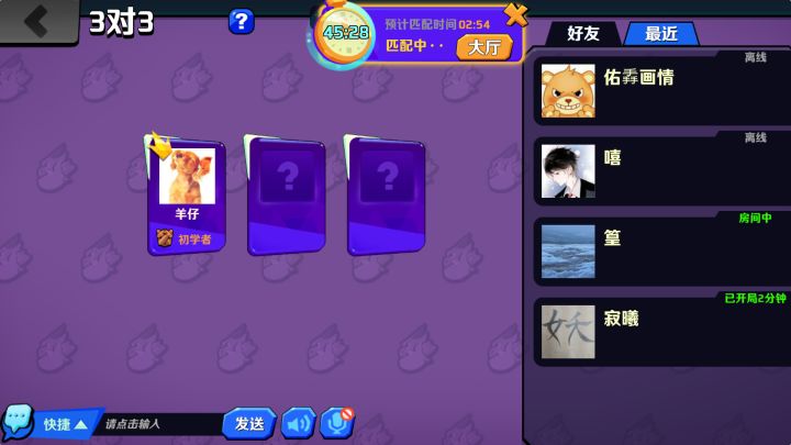 玩儿的人很少,匹配的时间太长,这个3v3的模式一直匹配不到的人。很伤心。有时候等的时间长,没注意,一不留神,就扣了信誉分儿。