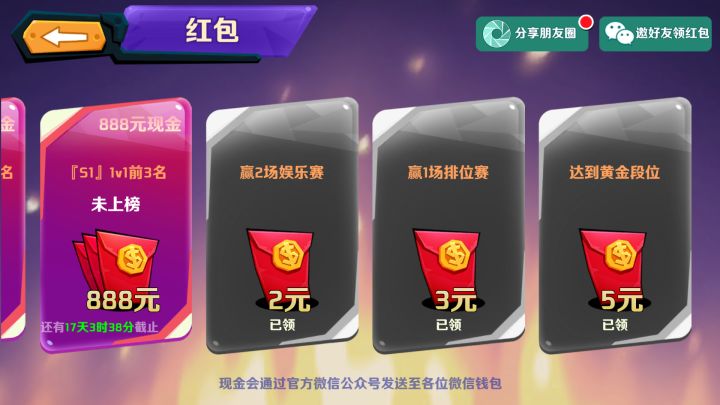 昨天领了2和3元的,是秒推的。今天上黄金领5元的,不推包了,然后游戏上显示已领。😓