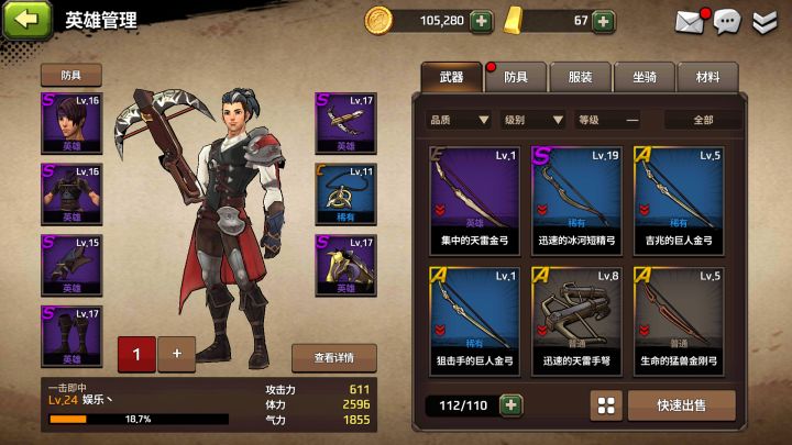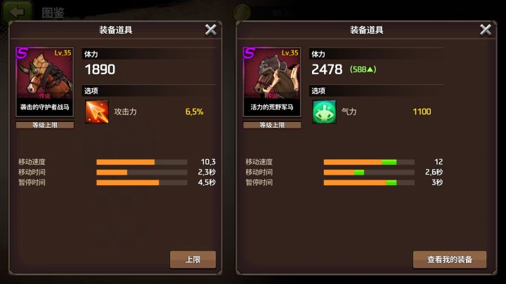 俩号玩哪个?一个号是狂乱长弓加袭击马,一个号是活力手弩加活力马。玩着感觉长弓打人确实疼,但是容易失误。