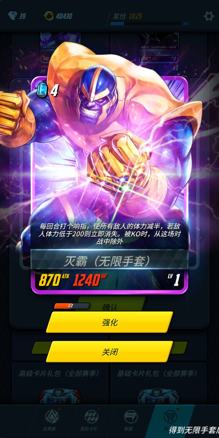 原玛奇对战团队倾力打造 只需3番钟 你就会和我一样 爱上节款游戏画面★★★★★UI和画面都很精美,战斗画面虽然只是扁平的卡牌,不过对战效果做的还不错,特别是多人连线成功的特写,十分酷炫。(玩过玛奇对战的,应该会对美术有种莫名的亲切感,很多小细节能注意到)既然是卡牌游戏,最重要还是卡面,美漫风虽然相对比较小众,不过真的看着很爽啊,漫威的漫迷绝对不会失望。玩法★★★★☆玩的不是很深入,打个