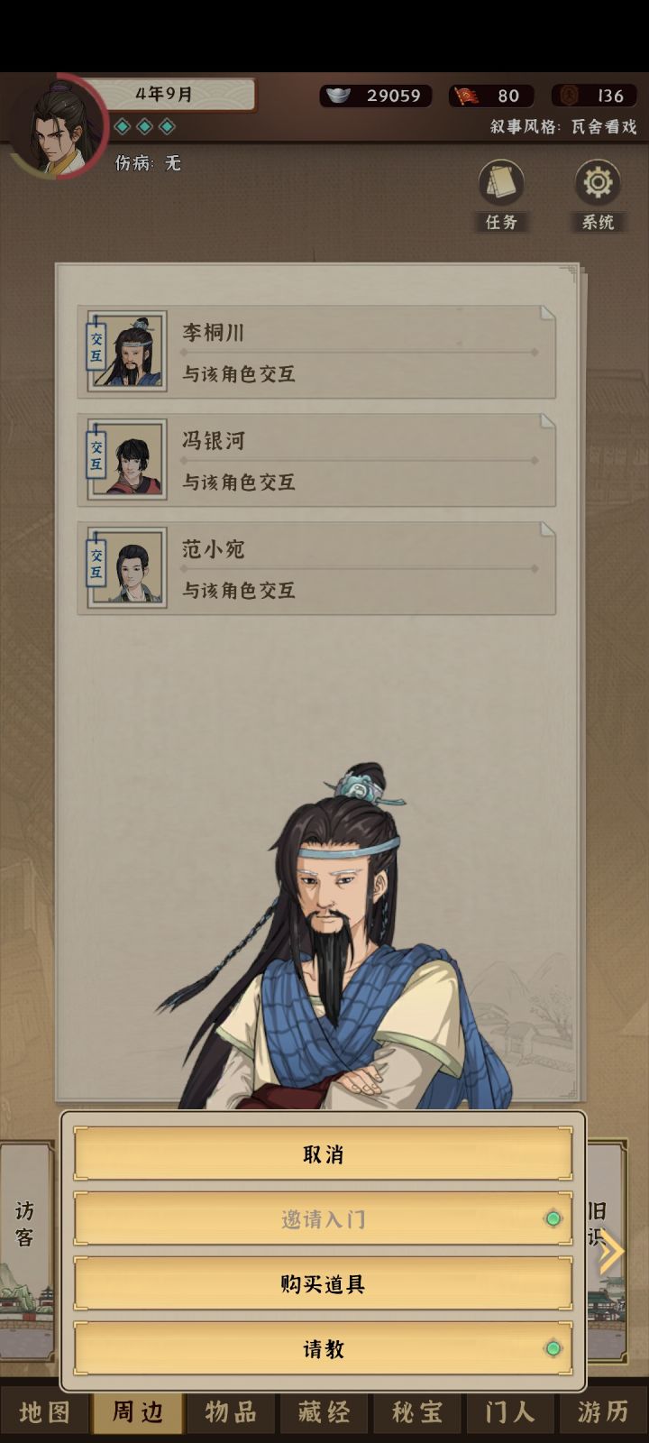 新出的旧实可以招募别的门派人了只不过得送礼提升好感到达70就行 顾曲门准备好了没👀