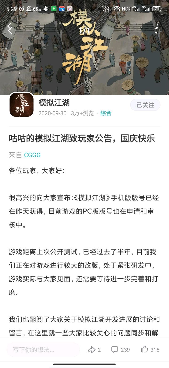 全文重点模拟江湖确定全面迁移到手机竖屏版本,首发移动端;游戏将仍旧保持单机买断制;将于5月中旬陆续开始启动多组玩家测试,现开始公开报名;本轮迭代测试后综合大家意见调整后,即准备公测发布,具体上线时间将尽快公布。版本实机预览松鼠有话要说大家好,我是模拟江湖当前版本的制作人临时工。《模拟江湖》自立项以来,大部分时间都保持着很少人数持续开发的状态,当前全职参与此项目的也仅有2~3人,但这并