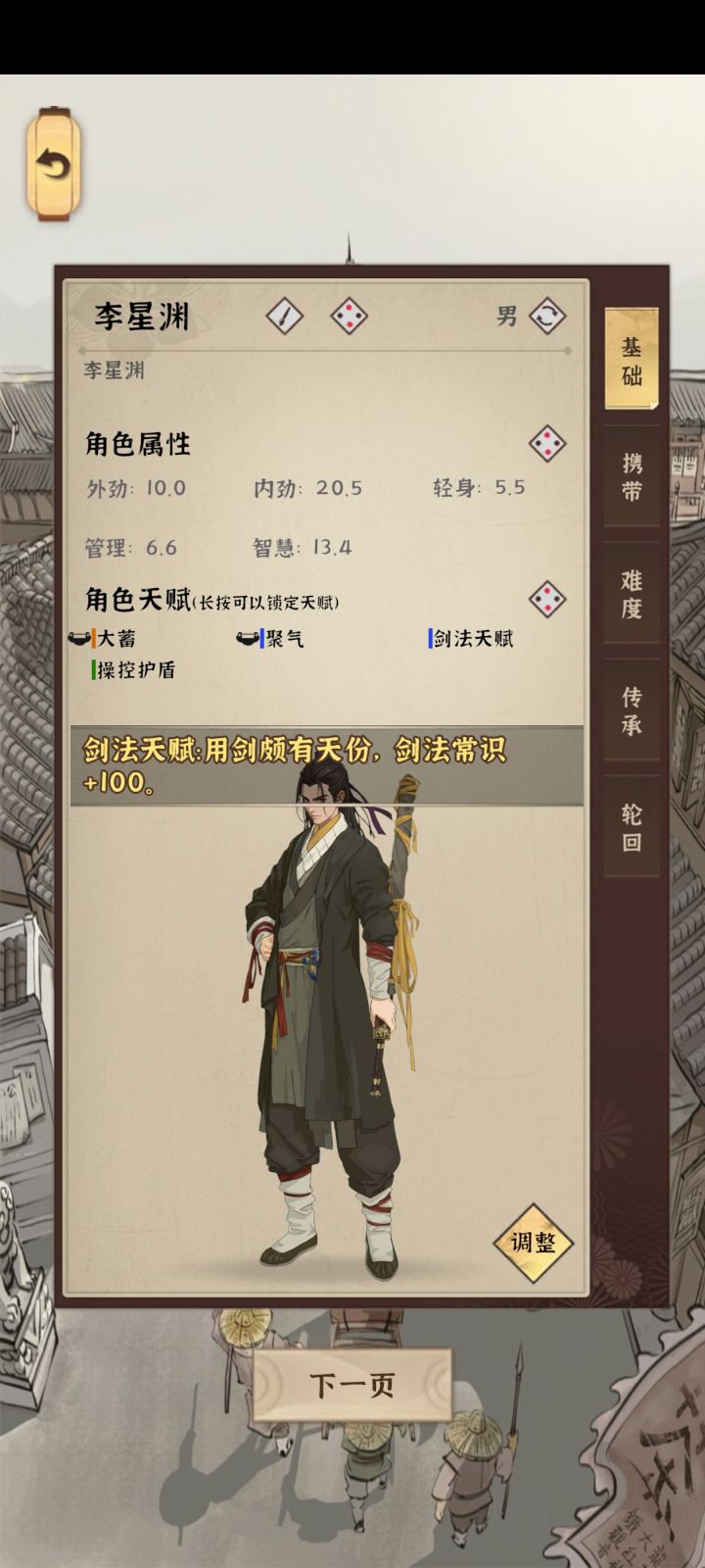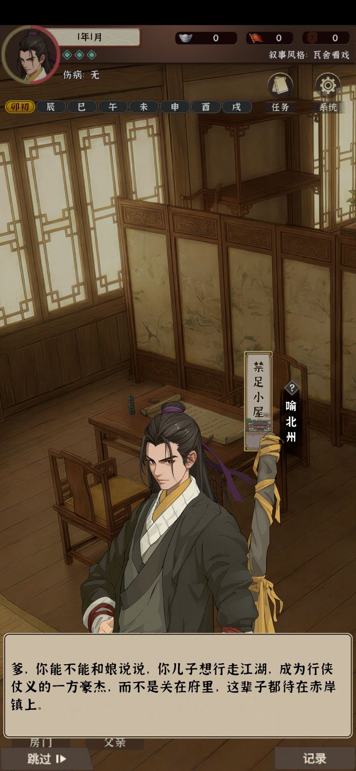 个人觉得的模拟江湖新手村最佳路线1.建议开局携带的物品roll几个高级食物或者食材,其他的根据你玩的流派和传承情况决定。2.开局家里的剧情快速过一下,从狗洞钻出来遇到空明一定要给他5两,买香的时候能优惠。3.正式进入新手村,现在是卯初——先去找衙门孙驿丞,卖给他高品质食材或者食物,卖三个可以获得一个煎鸡蛋菜谱(背包不足三个也没事,我的路线是要去帮厨,客栈厨师会送)。然后到集市找更夫,把脉成功
