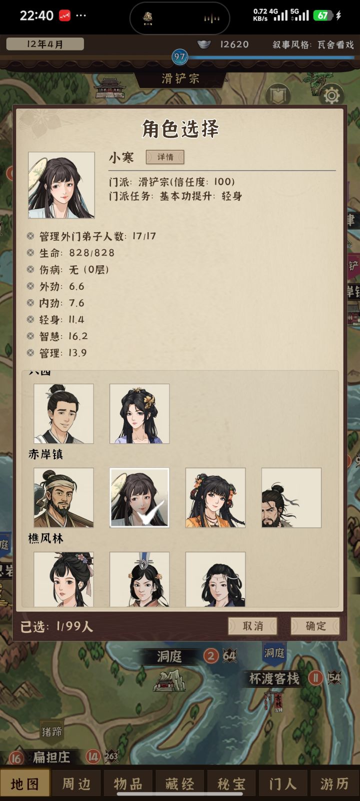 携带物这里可以全刷高等级食物,也可以留一条鱼给香客(门派第二个月远行需要喂狗的肉带小寒一起去)