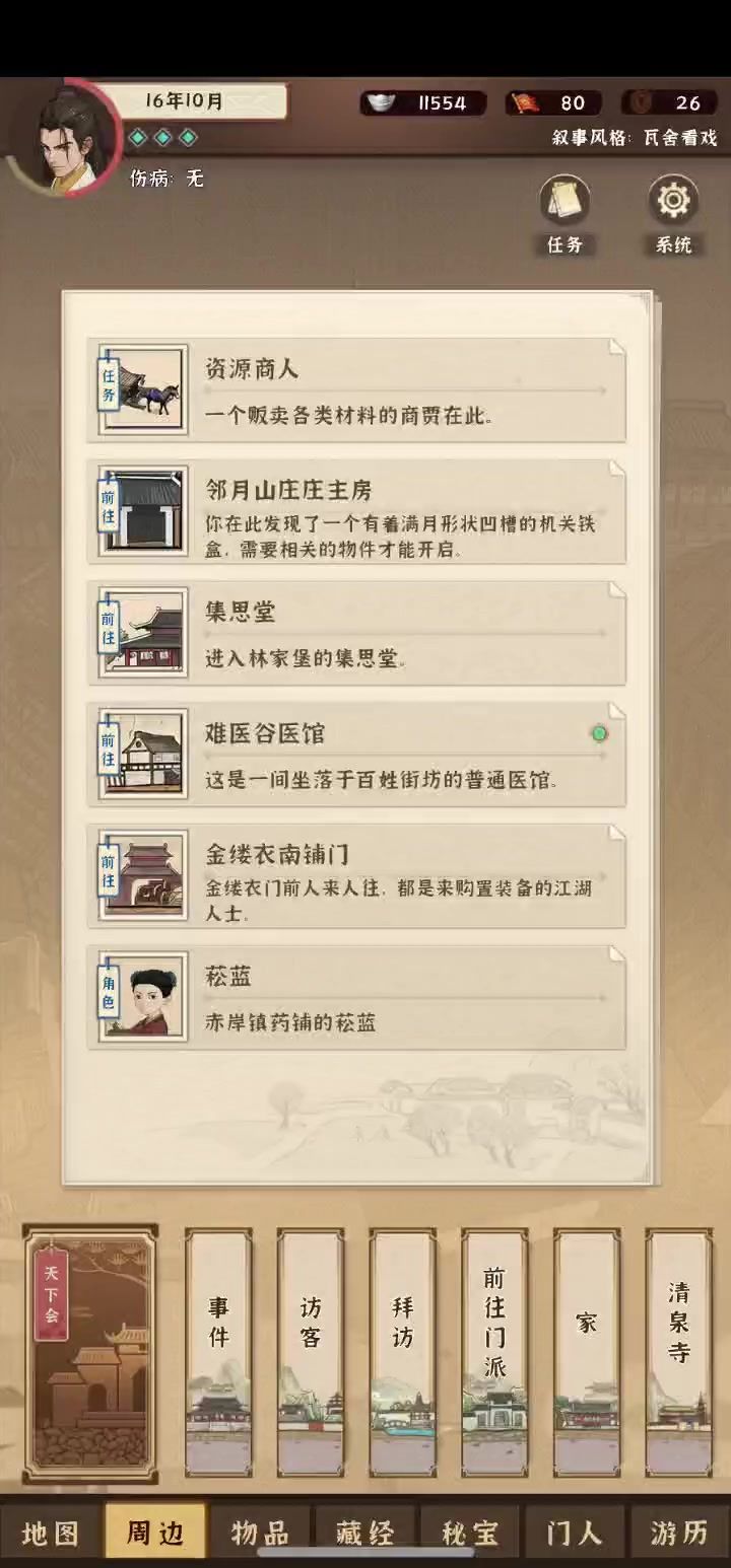 门人招募:胸口碎大石1.需要触发1年2月的地图事件《黄河三圣》,并且不能打赢(一般推荐专门弄一个档去招募,因为很难不打赢……)。2.后续地图事件《奇异的音乐》再去触发,会给一个南山乐谱,研究后解锁一个成就,然后可以拉他进门派。门人招募:李大前置事件:富贵庄的刘管事,对话后去找三个农民,李大这边打赢他就可以入队了。门人招募:何二前置事件:1.《飞沙走石》几个小混混从银鼠帮偷了一本秘籍来看;