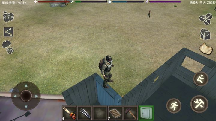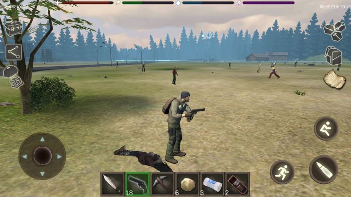 进入游戏拾取车厢里的资源。加油站可刷新的资源,电池(电锯的能源),药瓶(换取发射器炮弹的材料之一)。还有12发不再刷新的子弹。加油站后面有一个不刷新的瓶子和一个绷带的刷新点,棒球棍不好用,我没捡(其实现在我不浪费的话,手枪子弹用不完)。加油站后面有一颗树,下面有两个火石的刷新点(火石是木炭的来源之一)。农场里有食物,奶牛不要杀,每天四瓶奶基本上不用为食物和水发愁。农场仓库有个军人,可以和