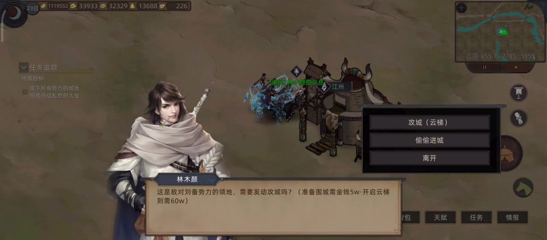 首先,你需要是一名城主,有了主城,你就可以用这个方法瞬间免费招来一批高质素兵种,且不占用军队额度!(不是在城内招或加入编制) 然后,你的NPC额度必须已满!不要留空位。这时候你去任意一个较发达的地方酒吧招募NPC,没错,依然可以招募,但他不会入队,而会入你的阵营。 重点来了,对方加入你阵营后,你与他再次对话,要他随你出征,这样他就会瞬间拖着一批军队跟在你后面。 更好的做法:对方加入你阵营后,你与他