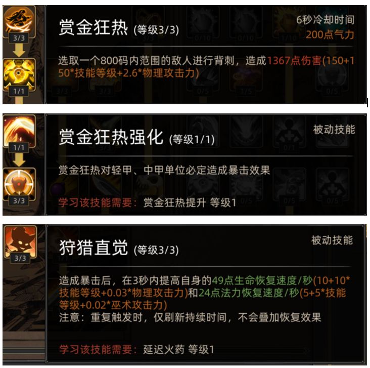 鬣犬这位角色就像一名刺客一样,技能会背刺敌人。 这名角色不能学习巫术技能搭配,但是这名角色可以通过技能击倒敌人来获得乌塔。 游戏前期获得的天赋点首要点魅力-砥兵-砥兵砥伍这个顺序,砥兵砥伍可以增加我军全体获得的经验值,一共增加队伍20%。 这个人物比较脆弱,前期有两个赏金新兵作为随从,不建议跨级打怪。 在十四、十五级后这个人物的技能才成型,只要不莽,合理地使用技能才能够获得优秀的游戏体验。 技能推