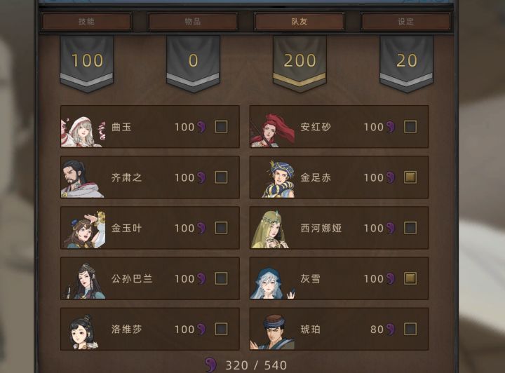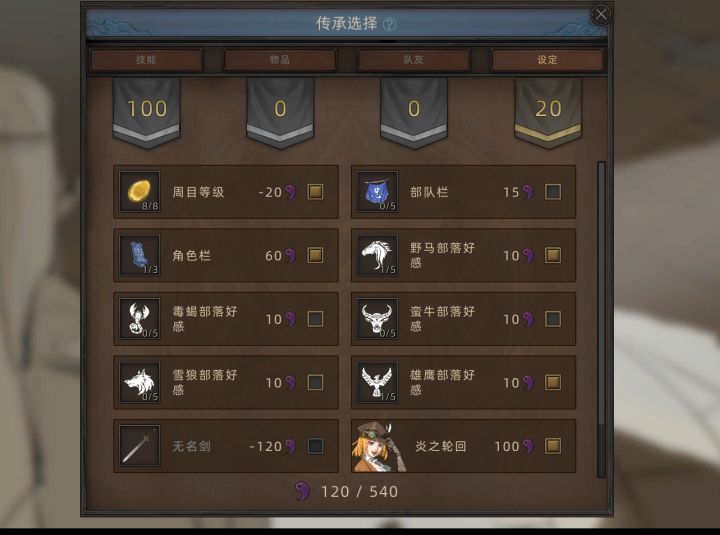 传承540,终局是灰雪技能,巴图技能,邵影,耶牙。目标是本周目六百传承。队友:炎之轮回(我认为最强单体),灰雪(打boss用,以及学习技能,招募巴图),金足赤(作用帮我打强盗,打地牢)技能:遁入阴影,狩猎精通,气刃斩。前期最难战斗是胆小的逃兵单挑,希望能打过。好感:野马和雄赢➕10声望5点,大型资源包一个,力量,敏捷,巫术药品拉满。队友栏解锁一个个人认为难点:声望获取困难,其他势力可以
