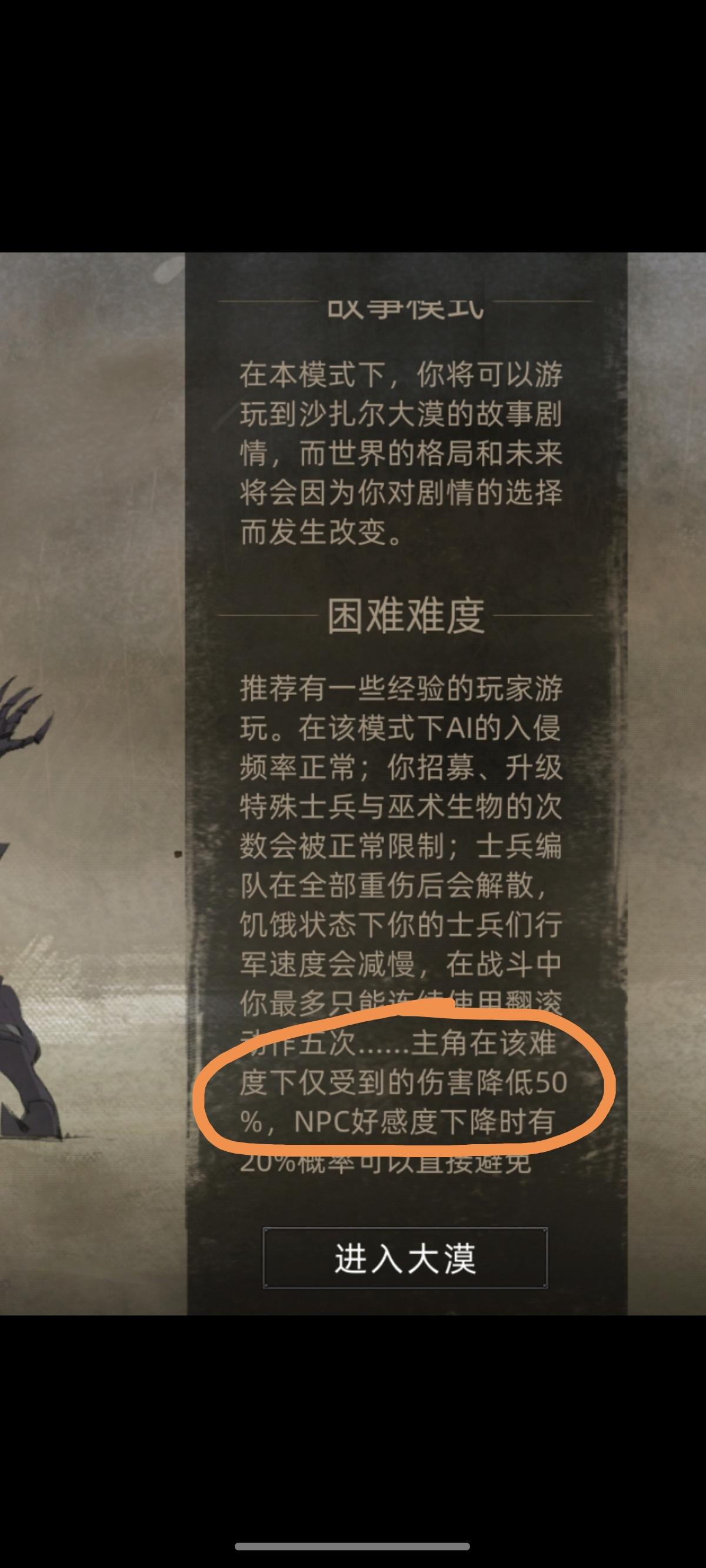 困难模式描述,玩家仅受到的伤害降低50%是什么意思