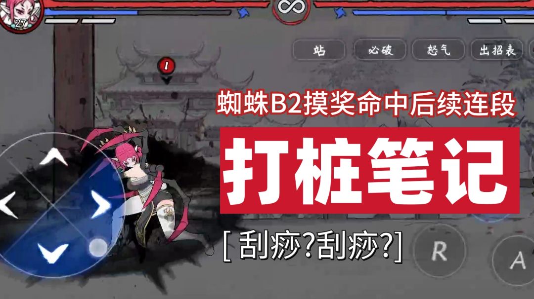 蜘蛛在压制中采用b2放帧打乱动也是一种比较有效的破防手段,蜘蛛连段中接蓄力C的常规手段可通过下下c和站ba后稳定接,本视频用的是目押跑b的极端方式,这样可利用ba的高浮空做蓄力取消接空中ab还能省点气!