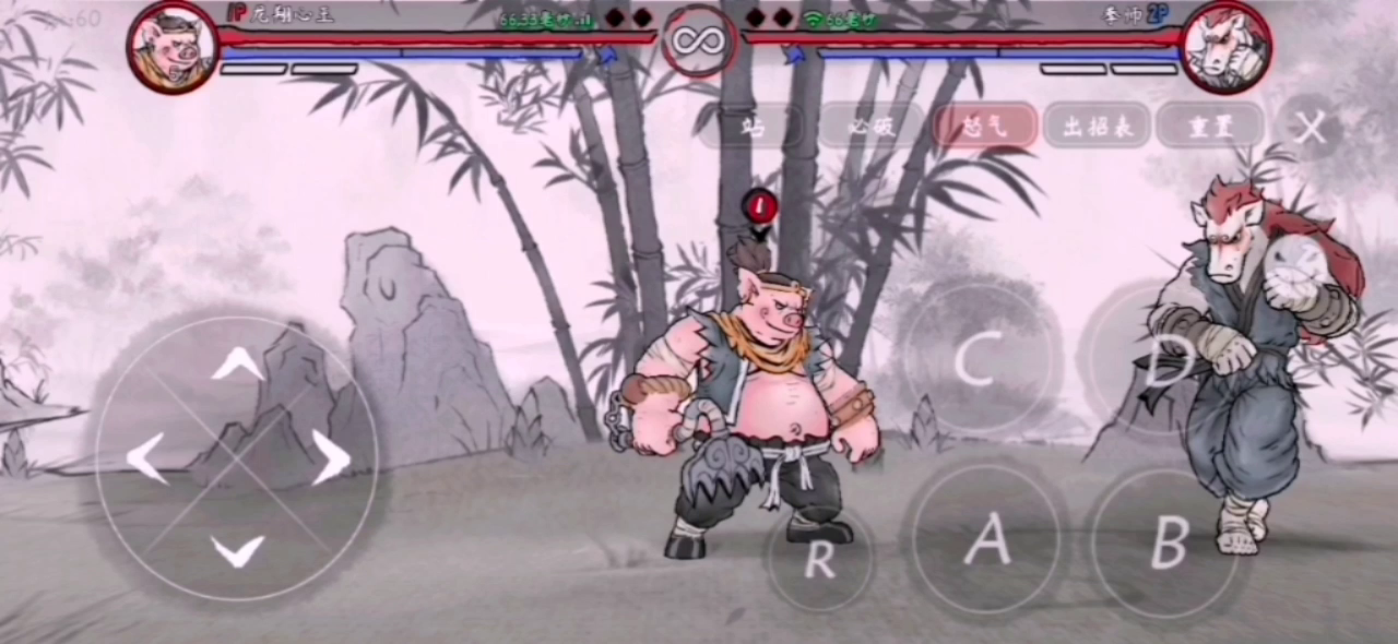 因为有点卡有些按键我会点很多下 连招键位如下 >>AAA >>B AB (空中↓A)↑B↓B[↓C(蓄力)我卡按不出来]↓C ABBB ↑A←B←A ↓↓C ↓A ↓↓C D ABC接大😁😁😁