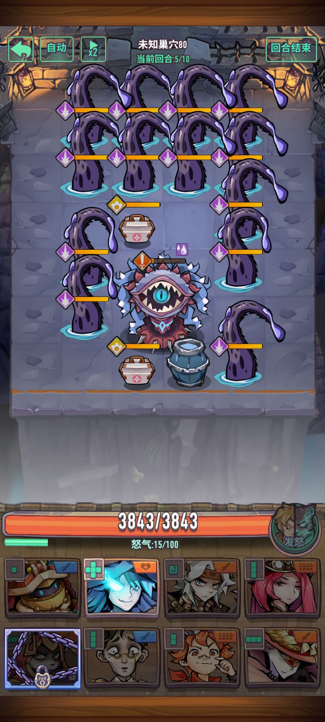 【时空窃客】 特点:每回合召唤小怪,随机沉默 注意点: ①注意刷出盾卫【守卫投影】的时候如果未能击杀,切勿使用可再动骑士,不然会获得【时空窃取】3层护盾,影响输出 ②【史莱姆投影】随回合数增加,召唤出来的史莱姆双抗也会提升【时空护盾】,护甲不够的情况下注意及时清理,不然会随【激励】BUFF增加导致扛不住伤害 ③最大化输出:凹主C和关键卡不被【时空乱流】沉默,利用击杀小怪+5怒合理控制怒气达到最大输