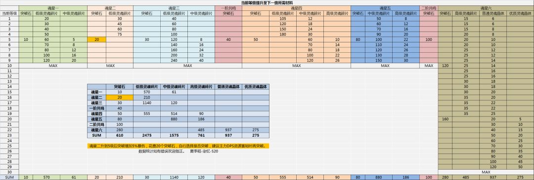 趁着这次春节活动,把统计的魂星材料发出来,给大家兑换资源时做个参考。