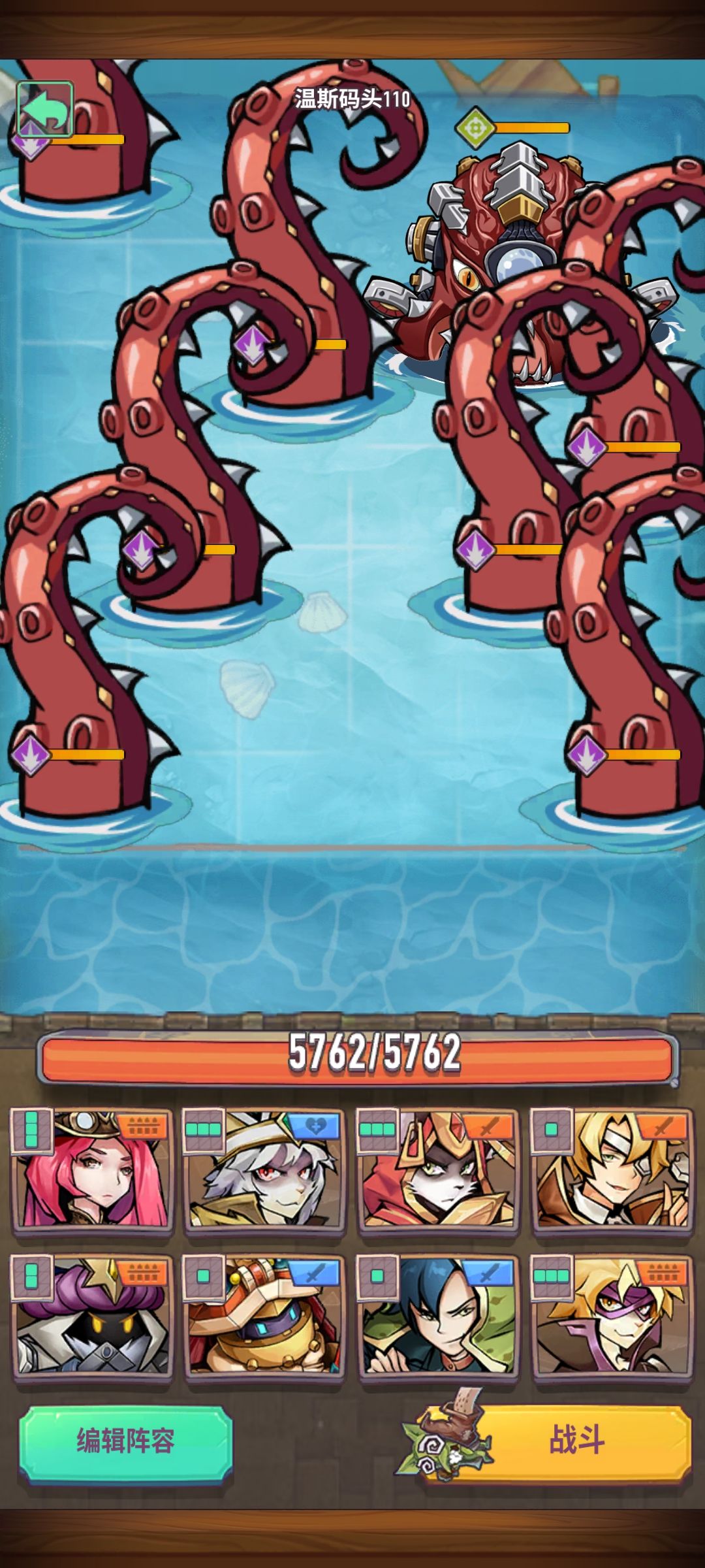 看血量就知道这个阵容非常贫民了,上阵人物里有两个都是裸装… 太阳带禁疗,先大下面两排,要求必须打死,伤害不够用哥伦布加吉尔补。冲击鱼1血等死。 点金点掉右上或者左上鱼,黑猫或者白猫抓死召唤师,另外一边用哪吒直接平a召唤师,溅射死周围一切。 许褚平a掉一个冲击鱼,梅林开发打冲击鱼挂盾,吉尔平a干掉鱼(吉尔攻击要求1460以上)。 第二回合所有人攻击boss,留哪吒在最后一个大盾卫溅射死boss。 试
