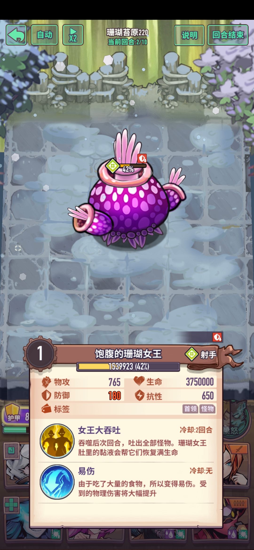 下面无视盾的怪恶心,每回合加攻击,恢复一半的血,打到血限就没。自己的哪吒当前80级全满,因为被等级压制,伤害不到位,现在要想过关,应该把哪吒升90。今天本来想第二套思路,但是想想明天就结算了,下次的本又是截然不同的,过不去就没必要浪费时间。