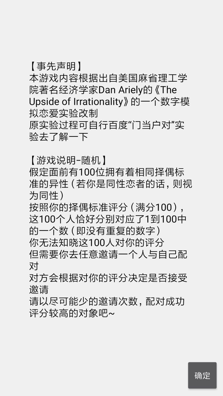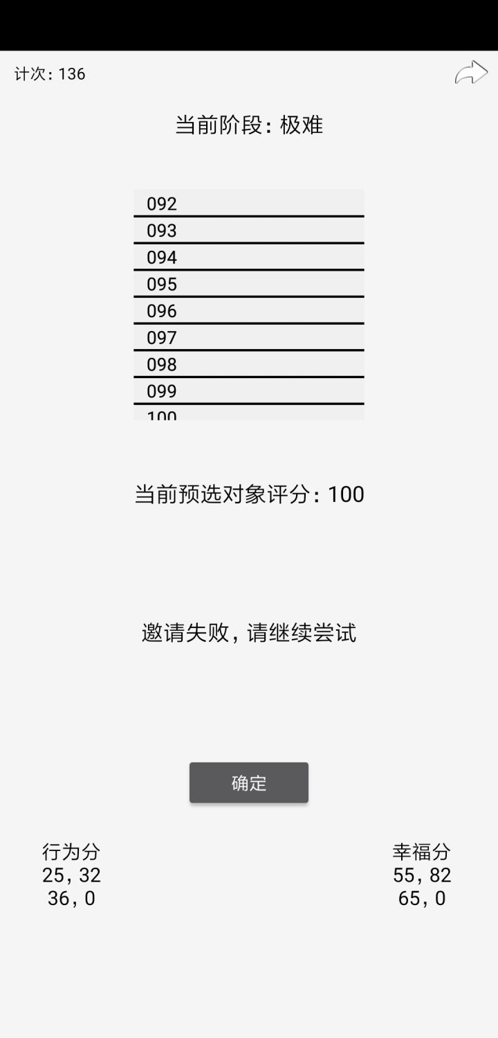 想要玩明白这个游戏,你得百度那个实验,然后根据心理学,尽可能追求高数字,实际上只有每个游戏里的最后一个游戏,才接近真实情况,but,原实验里,上限是100但实验者不知道上限是100,这点没有模拟出来