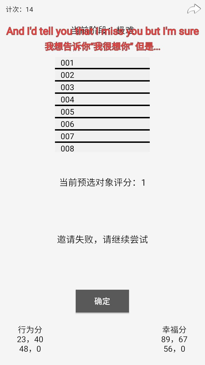 想要玩明白这个游戏,你得百度那个实验,然后根据心理学,尽可能追求高数字,实际上只有每个游戏里的最后一个游戏,才接近真实情况,but,原实验里,上限是100但实验者不知道上限是100,这点没有模拟出来