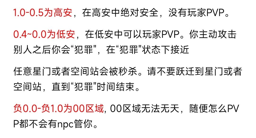1.萌新要是想在安全地带发展就去图二的地方刷际遇赚钱顺便练习如何刷怪,图二都是高安全等级地区,没人会打你的,你要是出去这安全等级地区被打那就没办法了(详细看图一)。 关于导航:游戏可以自动导航,也可以关闭游戏后台也会自动导航,导航方式选高安全等级导航。自己导航的时候切记导航到有NPC空间站的地方,不然被人在低安爆船那就蛋疼了。 2.萌新特别注意自己发展之路,别搞得自己科技乱七八糟的,到时候很难洗点