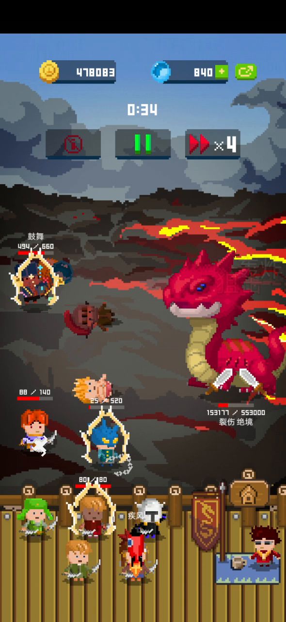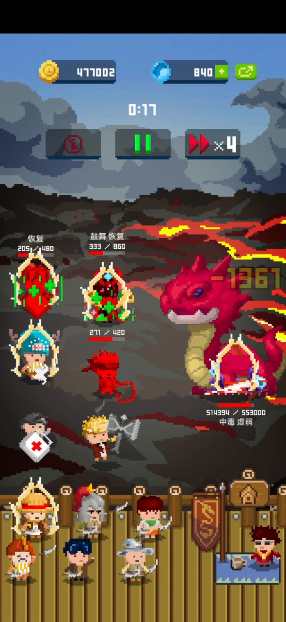 简单演示一下,非常差的配置,sl一下的话最开始不会挂英雄,这样都能一次磨掉10万左右血。 演示里面只有八戒是支援英雄,把氪金锤换成精钢锤吃蝙蝠翅膀输出会更高。 第二排最好是匕首+医疗包,我0医疗都撑了两三次晕。 第四排弄胆小的英雄就行。