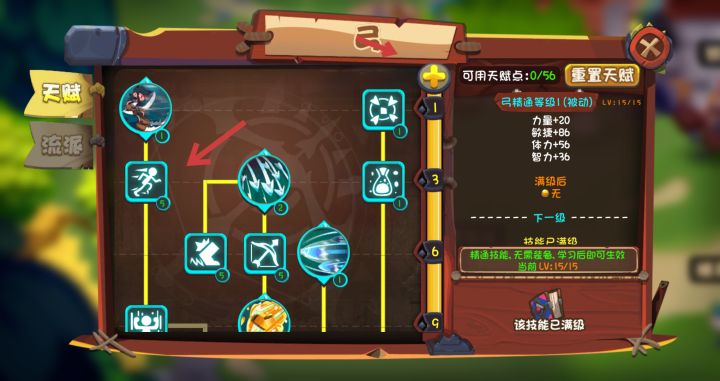 先加精通等级,当精通等级升级到1级后,能选择升级同一水平线的2个技能,同样当天赋等级升级到3、6、9、12、15级的时候,都能升级对应同一水平线的技能。