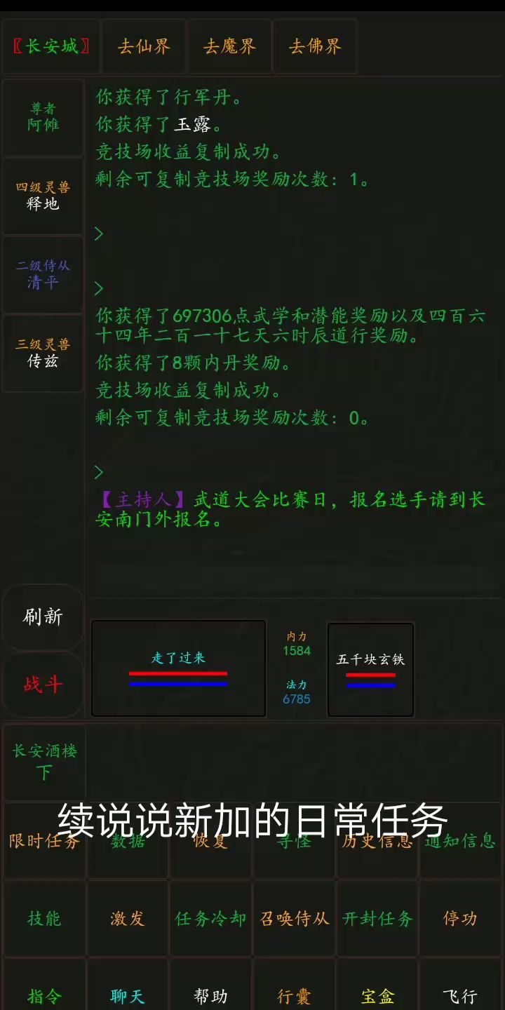 日常任务可以免费得到5次的竞技场和副本奖励!