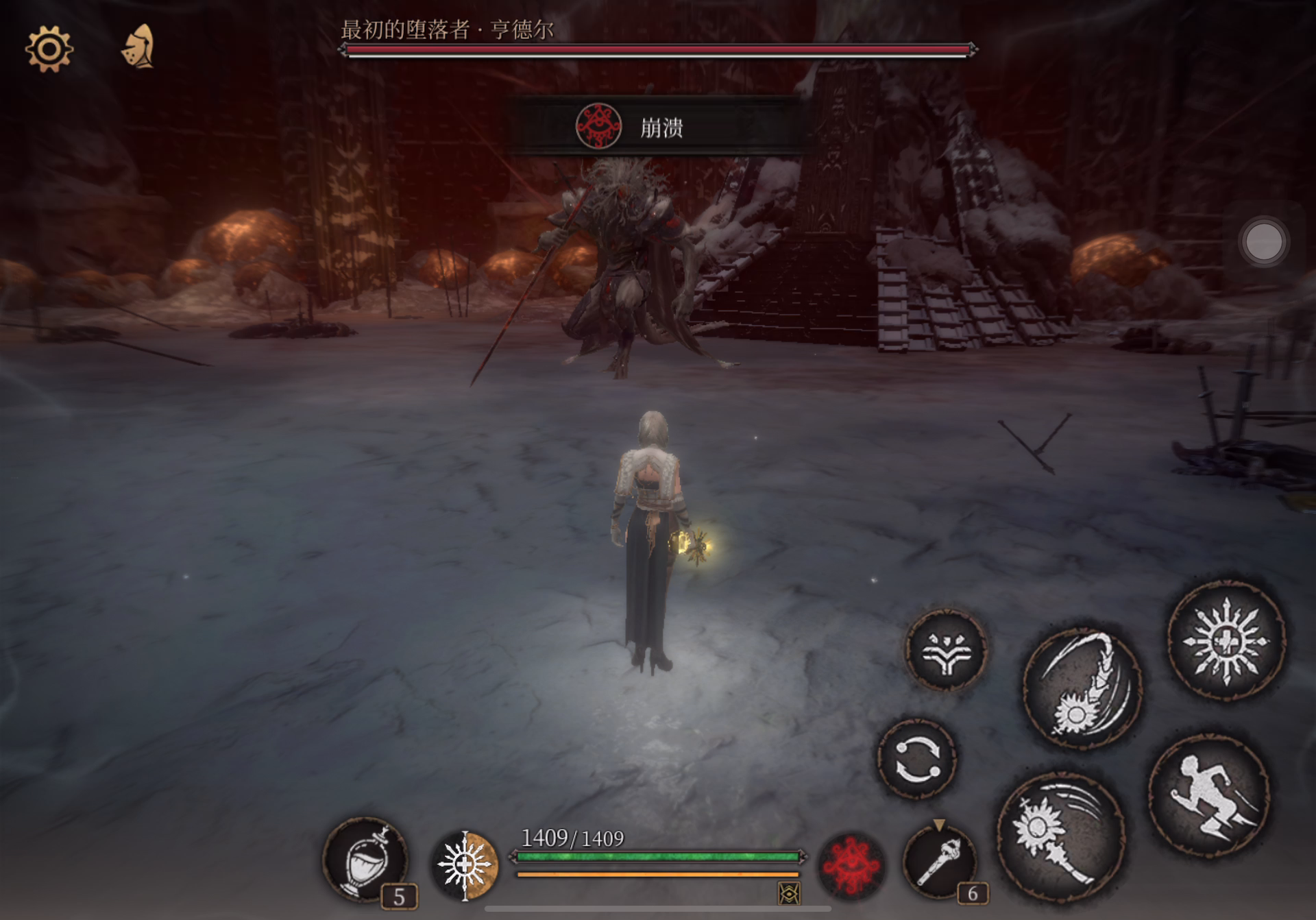 需要往前跳远点,血少的话吃个干瘪果子也行,可以踩走石头上去,直接进大门打boss