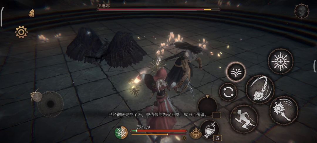 如果只想要通关的话,也是练第一下弹反,失败了不要紧,立刻长按格挡,不用担心失误,伊琳娜的血和精力条都很长,格挡完一套之后,立刻抽身后退,留空间给自己反应过来弹反