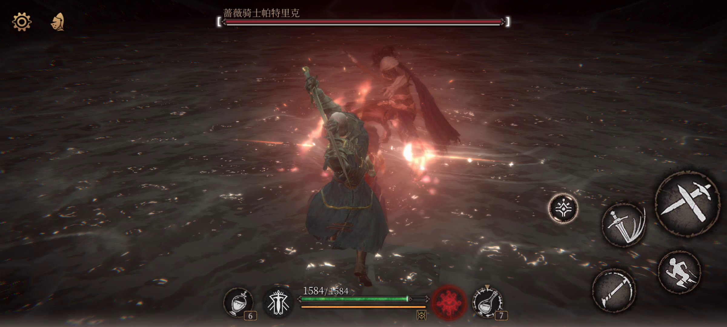 如果只想要通关的话,也是练第一下弹反,失败了不要紧,立刻长按格挡,不用担心失误,伊琳娜的血和精力条都很长,格挡完一套之后,立刻抽身后退,留空间给自己反应过来弹反