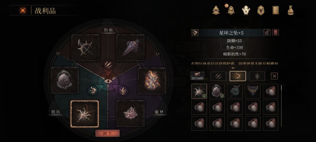 【剧情主流神装】黑雾顶级装备在最后。 1:【狂热之沙】-在维奥拉那里用支配者结晶买 2:【父爱】-阿达米亚任务通关,一定要带小女孩见妈妈。 3:【梅洛斯瓶】-在基塔布的守墓人那里,这个瓶子很肝,需要很多珊瑚虫骨,并且每关的BOSS必须在崩溃下击到,不然不能获得升级材料,如果瓶子升级程度不够,最后结局不能获得真相结局 4:【凝神之符】-这个用通关之后用污核在最后一关的一个地精那里买。另外基塔布的{永