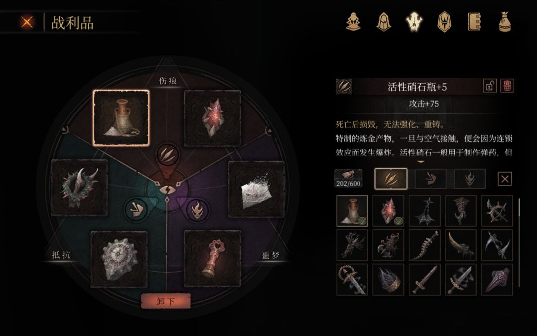 机制和DLC相关 ⒈玩家死亡后会损失50%的骨粒 ⒉等级上限99级,一级通关一周目会有成就 ⒊第一章山洞中有个负重者之卵,可以选择吃下(也可以归还),效果是获得50%的全伤害减免 ⒋攻击和受伤会失去理智,失去50%时进入异常状态,100%时进入崩溃状态。 ①异常:特殊状态,有负面和正面效果,在异常状态下杀怪会掉落珊瑚虫骨,可以用来找棺材哥买装备(不建议),也是神器梅洛斯瓶的升级材料。 ②崩溃:在一