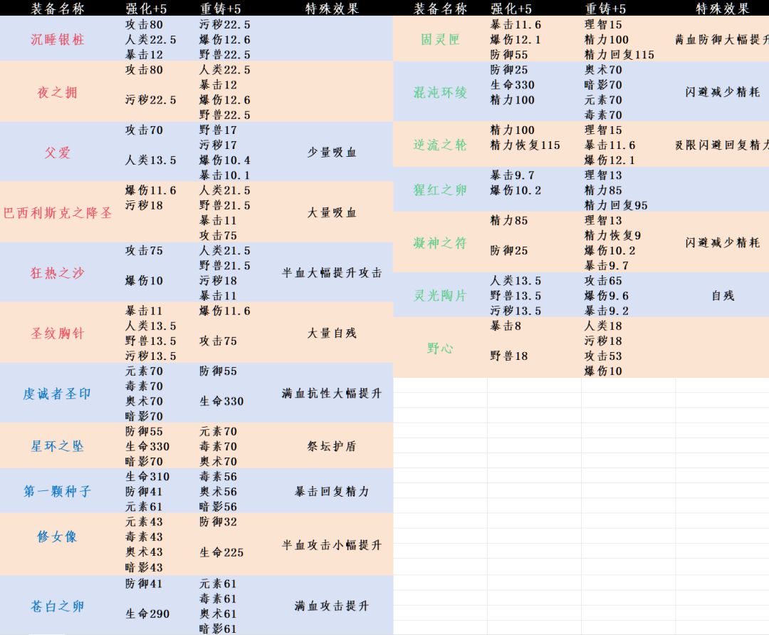 【雨夜】伊西索亚装备强化重铸一览帖
