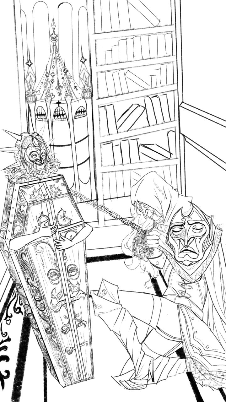我听说帕斯卡契约不会再出dlc了,那我把之前画的棺材哥摘面具和棺材姐的图放出来吧