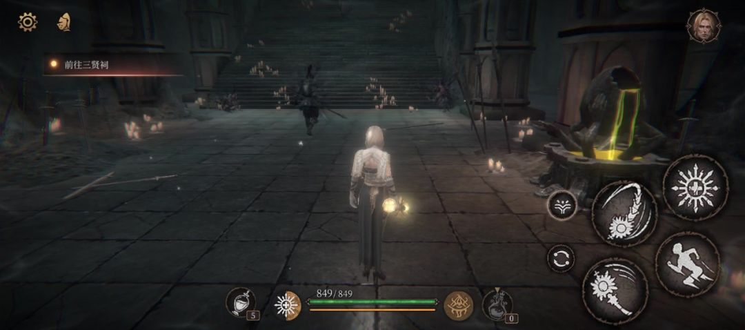 我想吐槽几点,在这里死了重来,用掉的道具不会恢复,都打成消耗战了,他这要是有个读档的功能都好。那个祭坛不会保存位置,每次打开游戏还得重走那个很绕的路。她每次出招伤害极高,稍不小心就致命,并且留给你的进攻空隙很短,属于是她可以失误无数次但你不能失误一次,打三个就算了,越到后面她防御还越高,意味着你的攻击次数变得更多