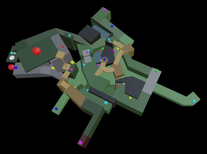 1. 如果有哪个角度画错了或看不清,请在下面留言,我会找时间补上。2. 天蓝色小方块为马车铃铛(即起点),至于其他每个位置分别是什么东西,请自行探索或参考论坛里大佬的手绘平面地图。3. 注意:各角度(包括俯视图)都存在标记被遮挡的情况,请综合各个角度查看。4. 我就是个门外汉,模型粗糙,请大佬轻喷。