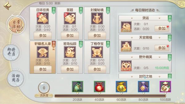 在《新轩辕剑》手游中,玩家可以通过多种形式获得经验升级,以下是小编总结的几点,一起来看看吧!一、 日常任务获得经验日常经验获取主要通过日环、封魔秘境、异次元答题、封印之地等活动获取,也可通过野外挂机获取。二、 福利活动获得经验福利——双倍经验出可领取双倍经验丹,等级达到45级之后,每周可领取一个双倍经验丹,在背包中点击使用;免费领取完后,也可花元宝购买经验丹,每周可购买9次;三、 交易经
