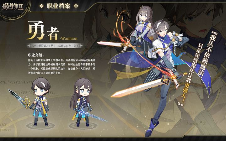 各位冒险者好~欢迎来到星界!为了让各位能更顺畅地展开冒险,时空管理局会陆续介绍星界冒险者的几大职业。天空主宰冕下,请赐予召唤之力!破~【职业档案】称谓:勇者Warrior定位:异世界中的常见职业,近战输出型,具有优秀的输出和生存能力。〓我从不依赖魔法,只是凭借魔法让我更加强大。〓【职业背景】作为上古职业泰坦战士的继承者,勇者拥有惊人的近战攻击能力。善于使用魔法增幅和剑术克敌,同时