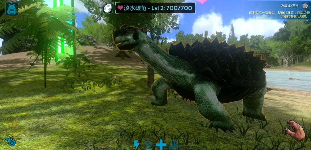 方舟生存进化:中年进入方舟恐龙世界,为躲避恶龙追击爬到龟壳上
