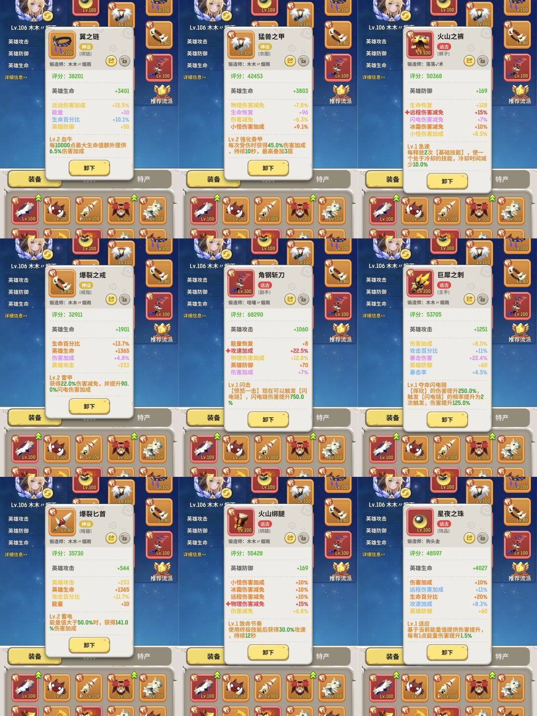 大概在不久的将来会有一大批玩家可以合成原始地鸣天星(注:获取方式原为十区狩猎王队伍四人可获得,现在跨服赛季根据排名可以开出碎片进行合成),地鸣天星的效果还是很厉害的,附图: 接下来推荐几套好用的单体点杀和AOE真伤特效套,分析一下优劣区别: 1.爆发最高的单体套,适合主线,狩猎赛,巨人之战,单体红木桩,宠物木桩,世界树回廊,兔子迷窟 这一套的支援空白位置是留给地鸣天星的,还没有地鸣天星的小伙伴用下